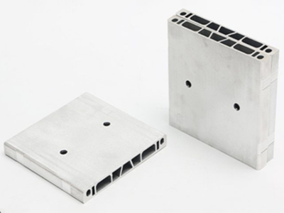 新能源汽车电池的两端均设有一个端板,汽车电池的两侧均设有一个面板,两个面板与两个端板相互固定,而两个端板用来与汽车电池安装部位的配套机构相互连接以固定电池,随着新能源汽车快速增长,对汽车轻量化要求,新能源汽车电池端板是使用铝型材端板,通过电池端板的开发设计,能够有效优化结构同时加快产品的开发周期。